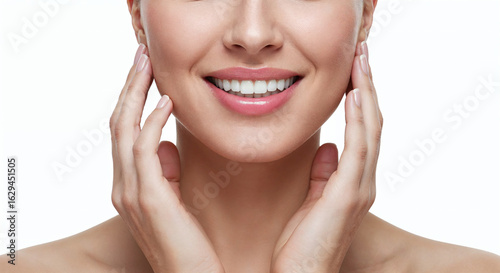 Close-up of a Woman's Smiling Mouth with White Teeth