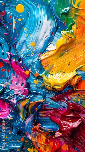 Closeup of abstract rough colorful multicolored art painting texture, with oil brushstroke, pallet knife paint on canvas