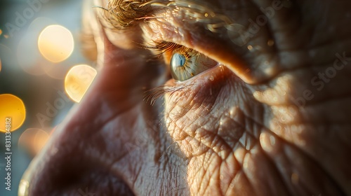 Close-up of an elderly man's eye. Shows detail and texture. Conceptualizes wisdom and experience. AI