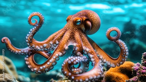 Close-up of an Octopus with Tentacles Extended in a Coral Reef