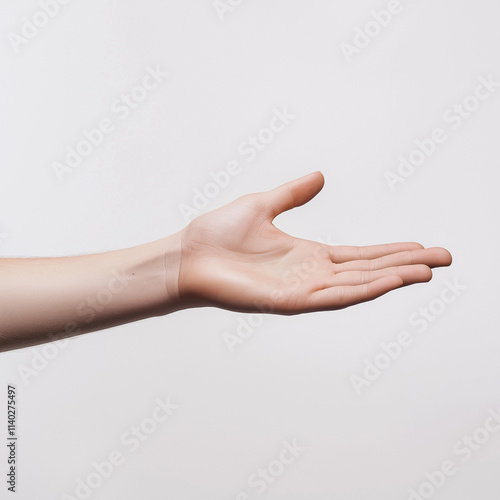 close-up of an outstretched hand, bathed in soft natural light, set against the backdrop of a muted neutral-colored wall with gentle shadows and highlights that accentuate its delicate texture