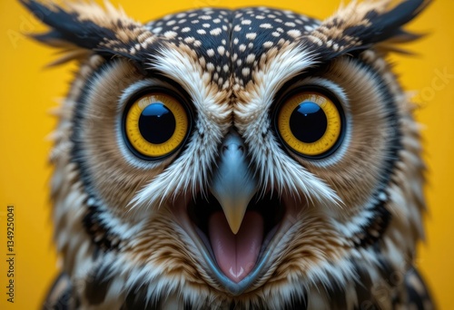 Close-up of an Owl with Striking Yellow Eyes and Open Beak
