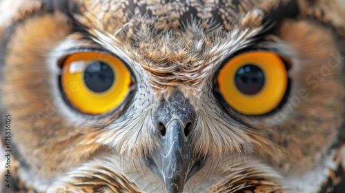Close-Up of an Owl's Face with Intense Yellow Eyes
