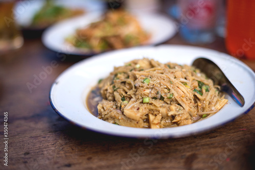 Closeup of asian food style on wooden floor