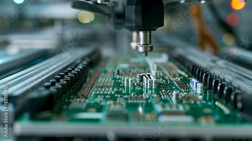 Close-Up of Automated PCB Assembly with Precise Component Placement by Advanced Industrial Machinery