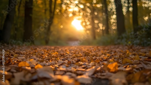 Close-up of autumn leaves on the forest floor