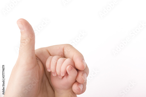 Close-up of baby's hand holding mother's finger