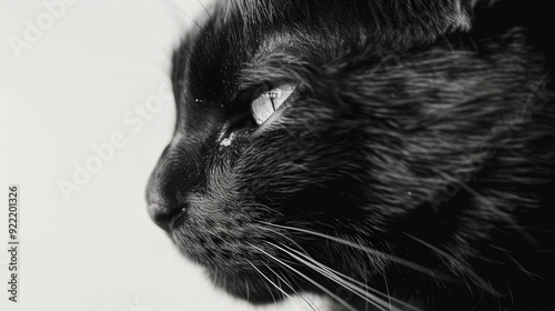 Close-Up of Black Cat on White Background Highlighting Monochrome Contrast