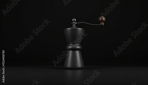 Closeup of black coffee grinder with freshly ground coffee on a dark backdrop freshly