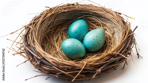 Close-up of Blackbird Eggs in Nest, Isolated White Background - Wildlife Photography
