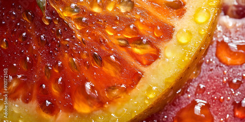 Close-Up of Blood Orange Slice with Juicy Pulp and Visible Seed