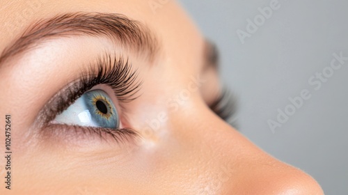 Close-up of blue eye with long eyelashes for beauty and skincare design