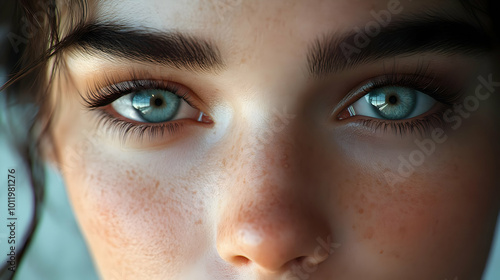 Close-up of Blue Eyes with Freckles 3D Illustration