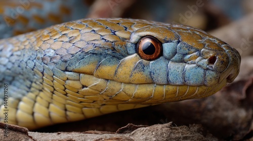 Close-up of Blue-tinged Smooth Snake Head, Detailed Scales & Amber Eye