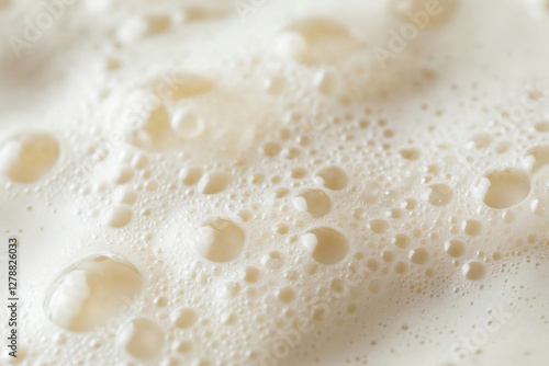 Close-up of bubbles and foam texture in creamy liquid for background design