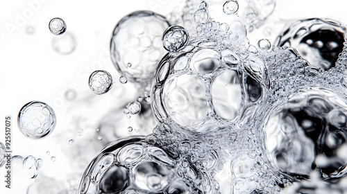 Close-up of bubbles in water, showcasing transparency and fluidity.