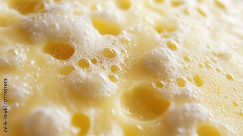 Closeup of Bubbly Dairy Cheese Surface Revealing Textures and Air Bubbles in a Fresh Dairy Product for Culinary and Food Photography