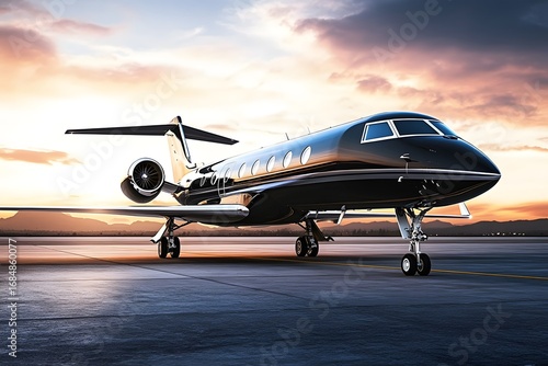 Close-up of business jet parked outside.