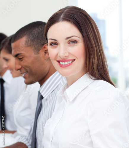 Close-up of businesswoman and her team