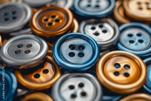 Close-up of buttons with blue one