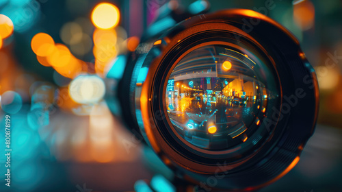 Close-Up of Camera Lens Reflecting Light