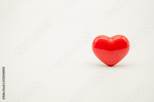 Closeup of ceramic red heart on white background and copy space for text.