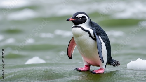 Close-up of charming penguin on antarctica's icy shoreline wildlife behavior