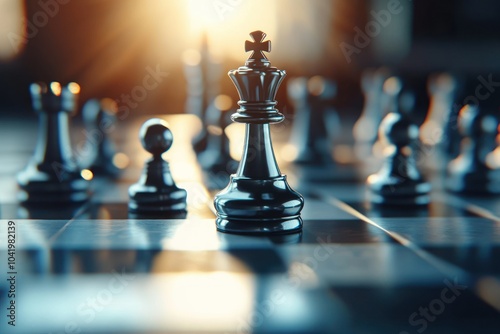 Close-Up of Chess Pieces on a Chessboard at Sunset
