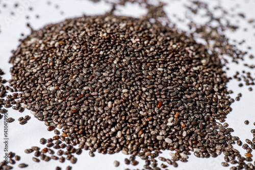 close-up of chia seeds, useful for improving digestion and saturating the body with vitamins and minerals. concept of dietetics, fitness, healthy eating.