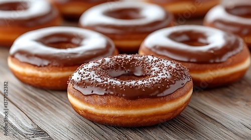 Closeup of Chocolate Glazed Donuts with Sprinkles