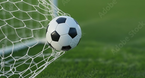 Close-Up of Classic Black and White Soccer Ball in Goal
