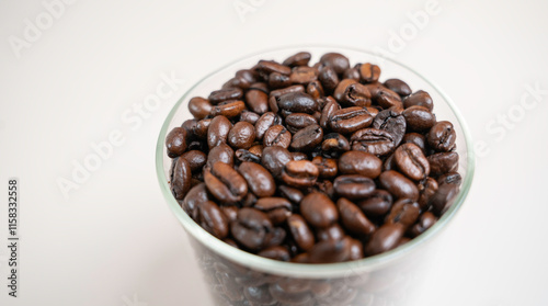 Closeup of Coffee Beans, Coffee Beans Isolated, Coffee Beans in a Glass Jar, Roasted Coffee Beans