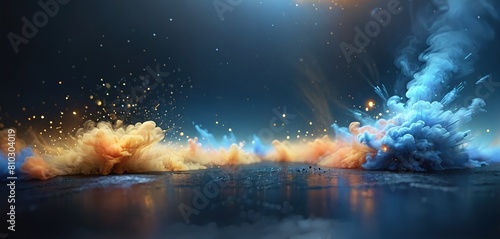 Close-up of colored dust particles are whirled up and released into the ambient air