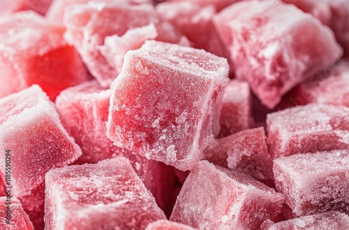 Close-Up of Colorful Frozen Strawberry Cubes Beside Each Other Ideal for Food Photography, Culinary Projects, Desserts and Refreshing Summer Treats