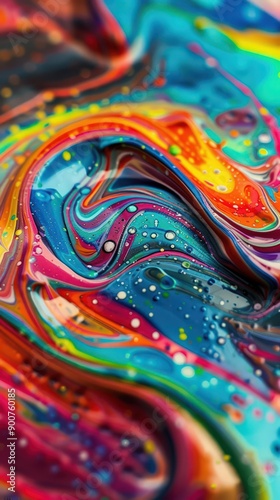 Close-up of colorful swirling paint with bubbles, mobile friendly