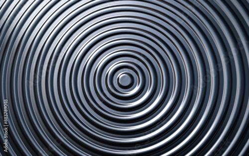 Close-up of concentric circles creating a mesmerizing abstract pattern with metallic texture, perfect for backgrounds or design elements.