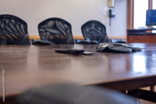Close-up of conference room table.
