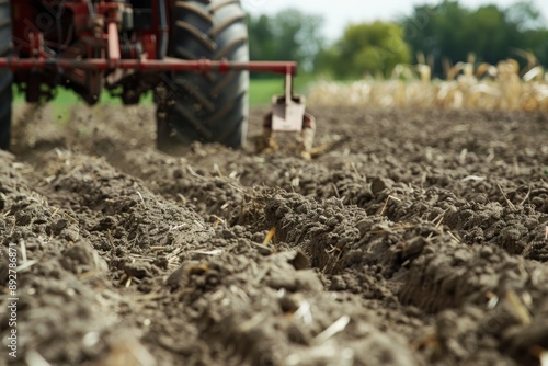 Close-Up of Conservation Tillage Equipment Working Soil for Sustainable Agriculture