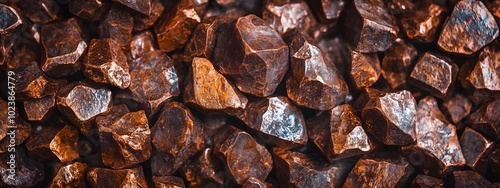 Close-up of copper nuggets, highlighting their rich brown color and intricate textures