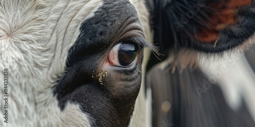 Close-up of cow's eye with overlaying images, showcasing depth and perspective.