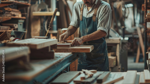Close-Up of Craftsman at Work in Small Furniture Manufacturing