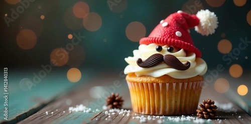 Close-up of cute cupcake with moustache and hat, festive treat, party, holiday
