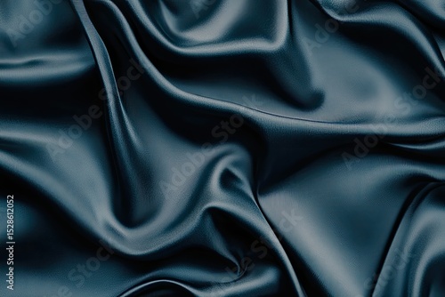Close-up of deep teal-gray satin fabric, draped in soft folds