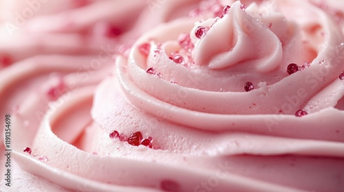 Close-up of Delicate Pink Buttercream Frosting with Red Sugar Crystals