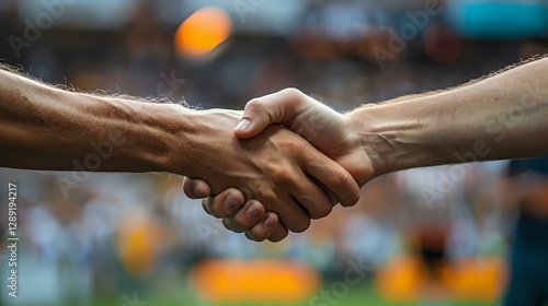 Close-up of diverse hands in firm handshake against blurred urban background with warm bokeh lights, symbolizing trust, agreement and partnership.