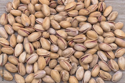 Close-up of dried pistachio kernels, healthy protein rich nuts.