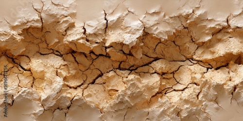 Close-Up of Drought-Affected Cracked Soil in Light Brown Tones Highlighting Textures and Patterns of Arid Land