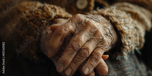 Close-up of elderly hands clasped together in prayer, emphasizing age, wisdom, and spirituality.