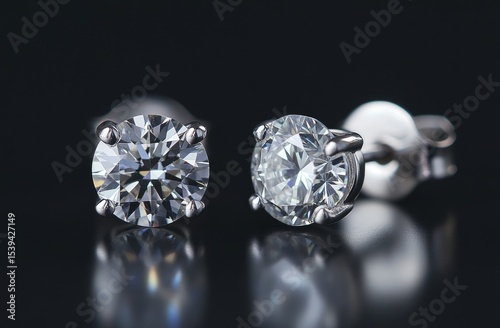 Close-up of elegant diamond stud earrings on black background (2)