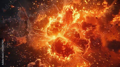 Close-up of explosion's fiery core (close up, destructive force, realistic, Fusion, Battlefield)